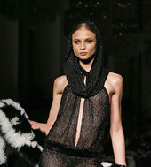 피렌체 남성복 박람회,'여성 모델의 아찔한 실타래 시스루 패션'