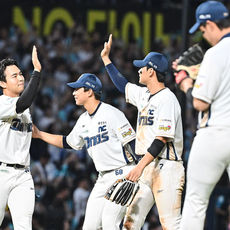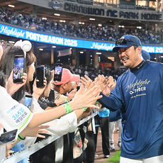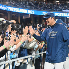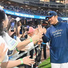 팬들과 하이파이브하며 가을야구 진출 기쁨 나누는 이호준 감독