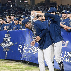 가을 야구 진출 축하 물세례 받는 이호준 감독