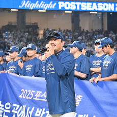 이호준 감독과 NC 선수들, 가을야구 진출 팬들에게 감사 인사