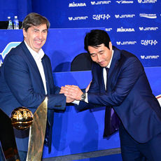 2025.10.15 16: 46손 맞잡는 현대캐피탈 필립 블랑 감독과 한국전력 권영민 감독