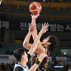 2025.10.20 20: 46유기상, 3점슛 성공 미소