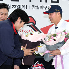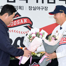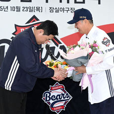 2025.10.23 15: 39김원형 감독에 꽃다발 전달하는 곽빈
