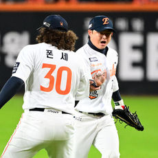 2025.10.29 18: 48폰세-이도윤, 병살 처리 하이파이브