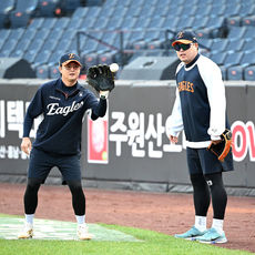 2025.10.29 15: 37하주석-심우준,'독수리 내야 이상무'