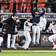 2025.10.30 09: 47심우준 역전타에 환호하는 한화 더그아웃