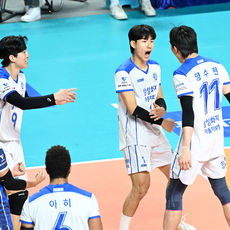 2025.11.19 20: 25득점 환호하는 삼성화재