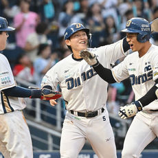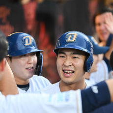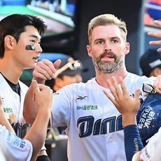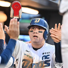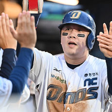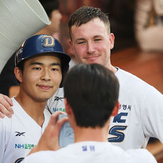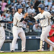 3점 홈런 김휘집과 기쁨 나누는 라일리