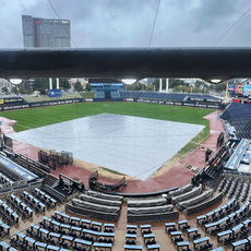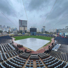 방수포 덮인 창원NC파크, 야구 가능할까?