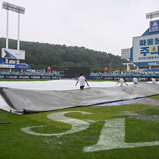 2025.10.06 14: 11경기 개시 위해 걷어지는 방수포
