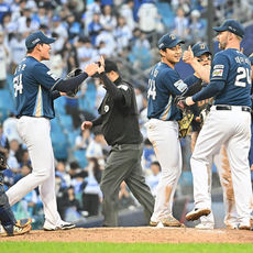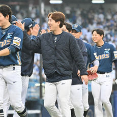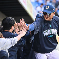 2025.10.06 17: 46와일드카드 1차전 승리 기쁨 나누는 NC 이호준 감독