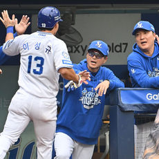 2025.10.06 16: 12박진만 감독 축하받는 솔로포 이성규