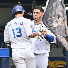 2025.10.06 16: 12솔로포 이성규, 후라도와 하이파이브
