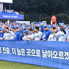 2025.10.07 17: 59준플레이오프 진출 감사 인사하는 삼성 선수들