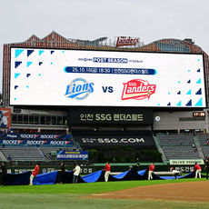 2025.10.09 18: 07준플레이오프 2차전 비 예보, 방수포 작업하는 SSG랜더스필드