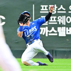 2025.10.09 16: 11[사진김성윤, 미끄러지며 슬라이딩 캐치