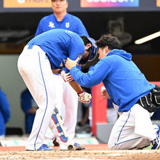 2025.10.09 15: 13김민 투구에 맞는 이재현