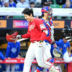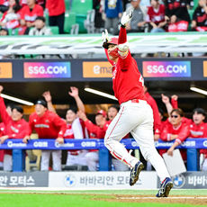 2025.10.11 17: 12SSG 김성욱, '준PO 2차전 9회말 끝내기 홈런 미소'