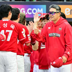 2025.10.11 17: 05끝내기 홈런 김성욱에게 인사하는 이숭용 감독