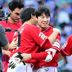 2025.10.11 17: 12'준PO 2차전 끝내기 홈런' 김성욱 뜨겁게 안아주는 최정