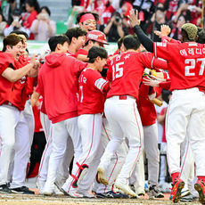 2025.10.11 17: 14김성욱 짜릿한 끝내기 홈런에 기뻐하는 SSG 랜더스