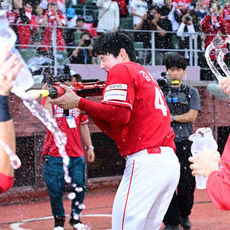 2025.10.11 17: 24준PO 2차전 끝내기 솔로포 뽑아낸 SSG 김성욱, '시원한 끝내기 물세례'