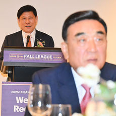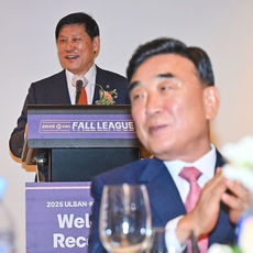 2025.10.13 18: 182025 울산-KBO Fall League 건배하는 김두겸 울산광역시장과 허구연 KBO 총재