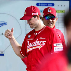2025.10.13 18: 24SSG 선발 드류 앤더슨, '이숭용 감독 미소짓게 만드는 엄지척'