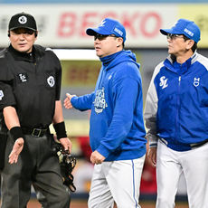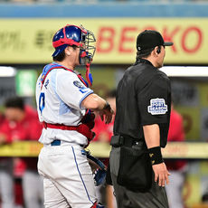 2025.10.13 21: 08한유섬 사구 어필하는 강민호,'고의 아니에요?'