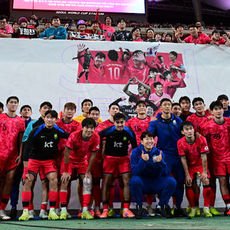 2025.10.14 22: 07손흥민 '7' 앞에서 붉은악마와 승리 자축하는 대한민국