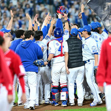 2025.10.14 21: 43SSG 잡고 업셋한 삼성,'한화 나와라'