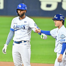 2025.10.14 20: 35김성윤, 득점 성공 하이파이브