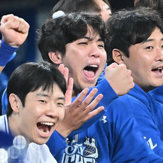 2025.10.14 20: 35김성윤 득점 비디오 판독 끝 환호
