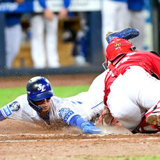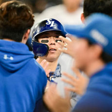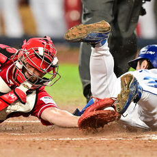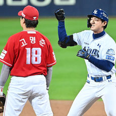 2025.10.14 20: 25추가 득점 김성윤,'터치가 더 빨랐어'