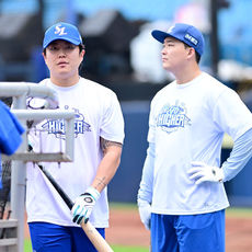 2025.10.14 15: 30준플레이오프 4차전 준비하는 삼성 류지혁-전병우