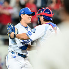 2025.10.14 22: 14준PO 4차전 지켜낸 삼성 김재윤-강민호 배터리, '이렇게 좋을수가'