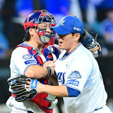 2025.10.14 22: 10강민호,'후라도 격하게 껴안으며'