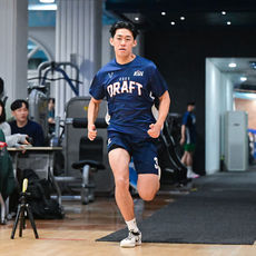 2025.10.16 13: 03서전트 점프 측정하는 신인선수 드래프트 컴바인 참가자들