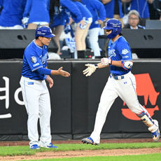 2025.10.18 17: 319회 마운드 올라 선수들 격려하는 김경문 감독