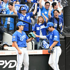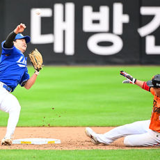2025.10.18 16: 07류지혁, 1루 송구하며 하주석과 가벼운 충돌