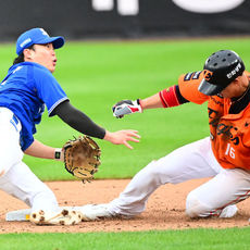 2025.10.18 16: 07류지혁, 1루 송구 과정에서 미끄러지며