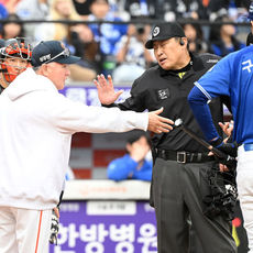2025.10.18 15: 14박기택 주심에게 항의하는 김경문 감독
