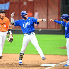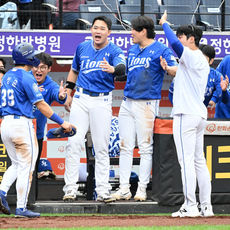 2025.10.18 15: 19김성윤 동점 득점에 환호하는 삼성