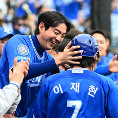 2025.10.18 14: 47구자욱, 이재현 예뻐 죽겠어