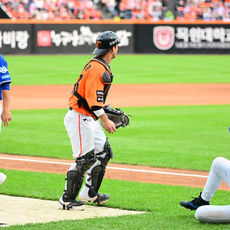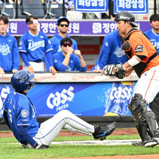 2025.10.19 15: 34구자욱 태그아웃 처리하며 위기 넘기는 최재훈