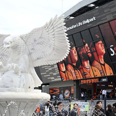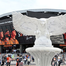 2025.10.19 13: 01대전 한화생명볼파크에 설치된 독수리 석상