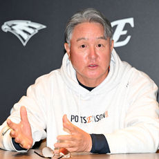 2025.10.19 13: 06취재진의 질문 듣는 김경문 감독