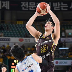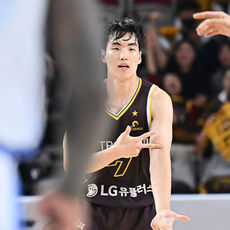 2025.10.20 20: 46유기상, 3점슛 성공 미소