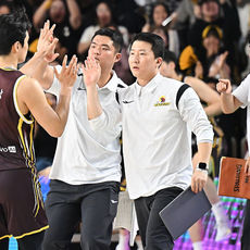 2025.10.20 20: 46유기상, 3점슛 성공 하이파이브