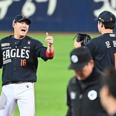 2025.10.21 21: 50하주석, 문동주에 엄지척